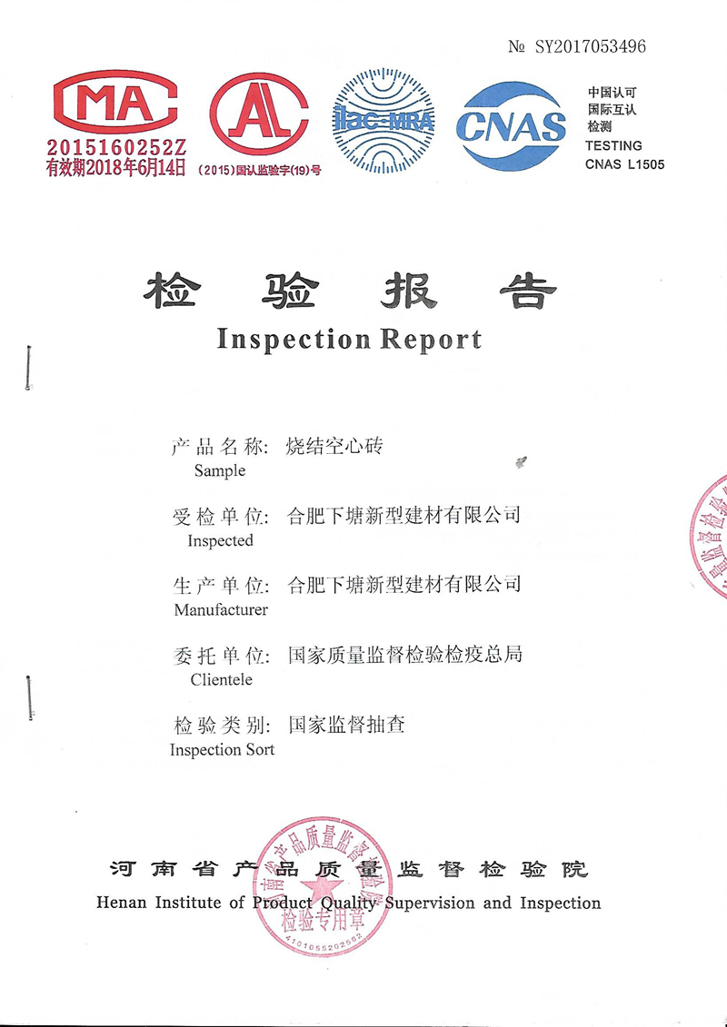 本公司是生產銷售燒結煤矸石空心磚,多孔磚、燒結保溫砌塊的新型墻材企業,位于合肥長豐縣下塘鎮錢集社區。我廠始建于1992年,占地300畝,現有員工55人,2011年響應國家發展新型墻材,實現節能減排,有效保護耕地,推廣資源綜合利用政策,公司建設了合肥市首批煤矸石磚生產線,開發使用煤矸石(工業廢渣)生產燒結空心磚制品。此舉受到主管部門的大力贊許與支持,產品全部通過國家質量檢測部門檢測并榮獲上級部門授予的“安徽省新型墻材證書”“綠色建材產品”等證書。產品一直暢銷周邊市場,與多家開發、建筑單位簽定長期供銷合同,質量與售后服務受到用戶一致好評。